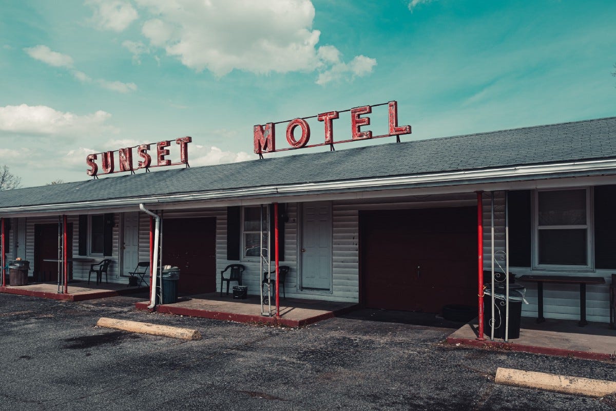 She was used to this view by now, the handful of cars and randomly lit windows here and there. Nobody was ever outside, there was simply no reason to, or motivation to leave the motel room for anything other than giving the keys back, getting into one’s car and driving off.